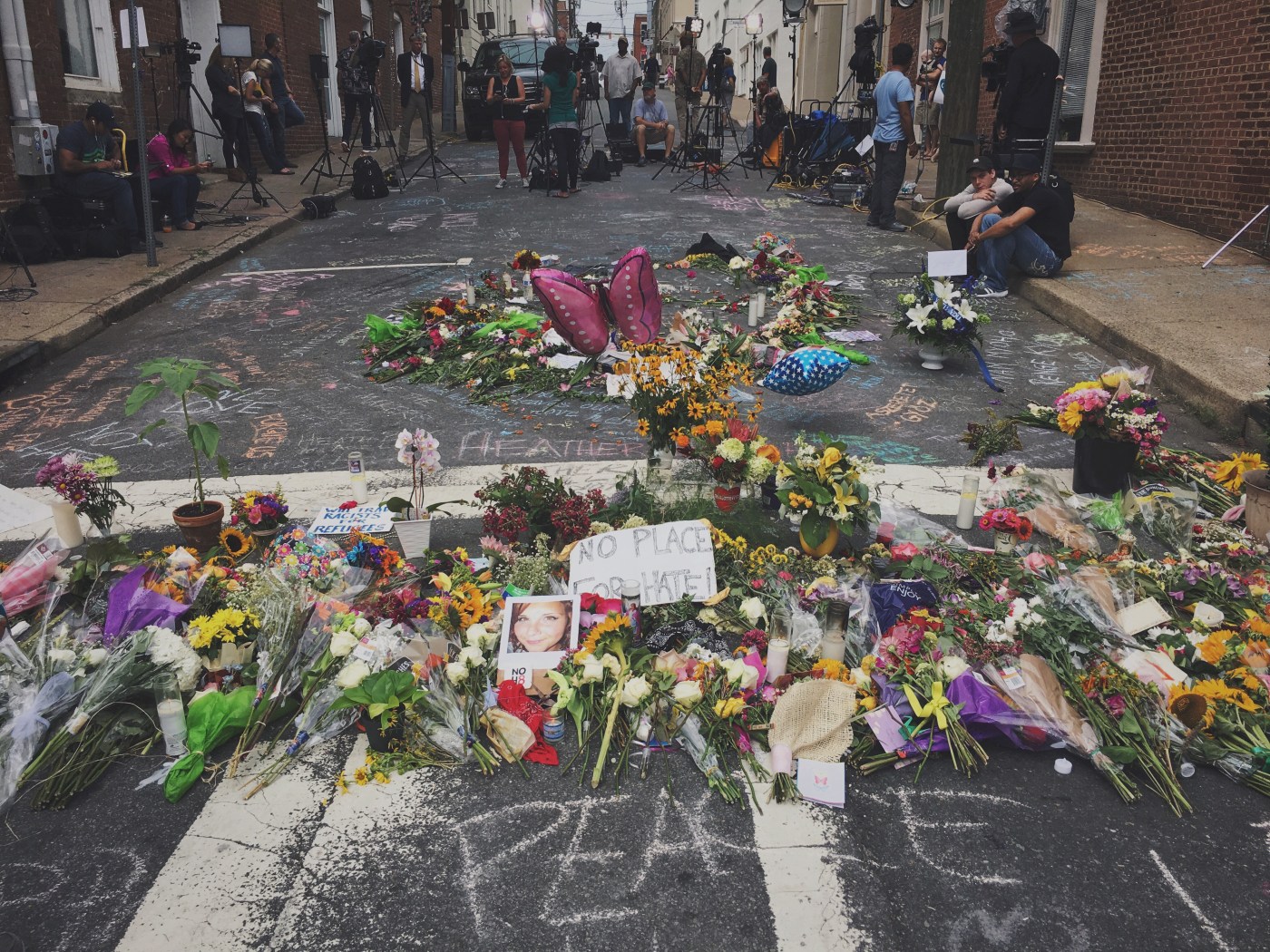 The day after the wedding, I visited the spot of where the car crashed and killed Heather Heyer and injured several others. I wanted to share this photo because as I looked upon this site, I saw love in action.